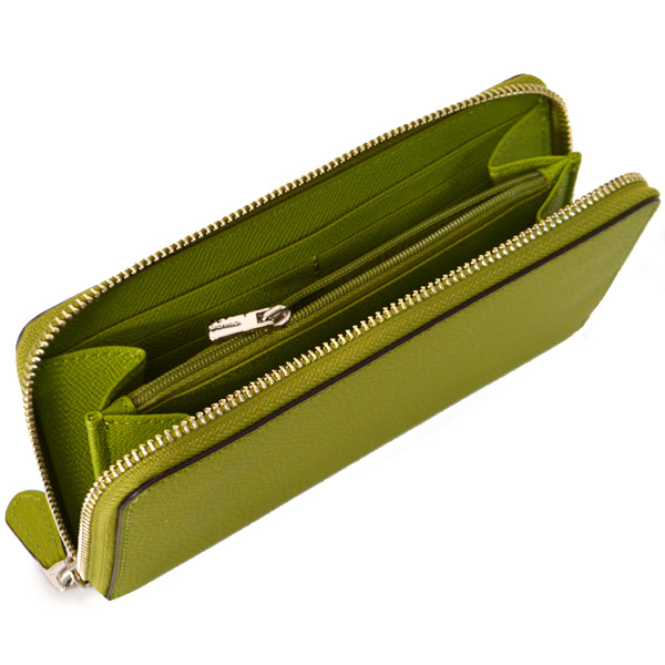 コチガルのホーム長財布【COACH】コーチ ラグジュアリー ペブルド レザー アコーディオン ジップ 長財布 イエローグリーン(日本未発売)