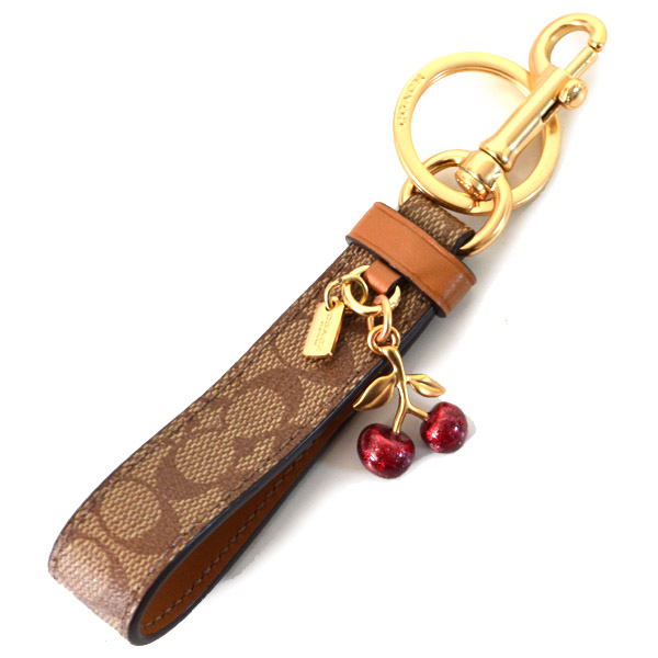 コチガルのホームキーホルダー【COACH】コーチ コーティングキャンパス レザー シグネチャー さくらんぼ チェリーチャーム ループキーリング キーフォブ キーホルダー マルチ(日本未発売)
