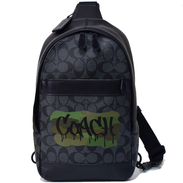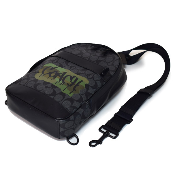 コチガルのホームメンズバッグ【COACH】コーチ レザー シグネチャー ストリートアート グラフィティ ロゴ チャールズ ワンショルダー バックパック チャコール×ブラック〔日本未発売〕