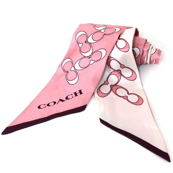 コチガルのホームスカーフ【COACH】コーチ シルク バイアスシグネチャー Cスキニー ボウタイ スカーフ ストール ヴィンテージピンク(日本未発売)