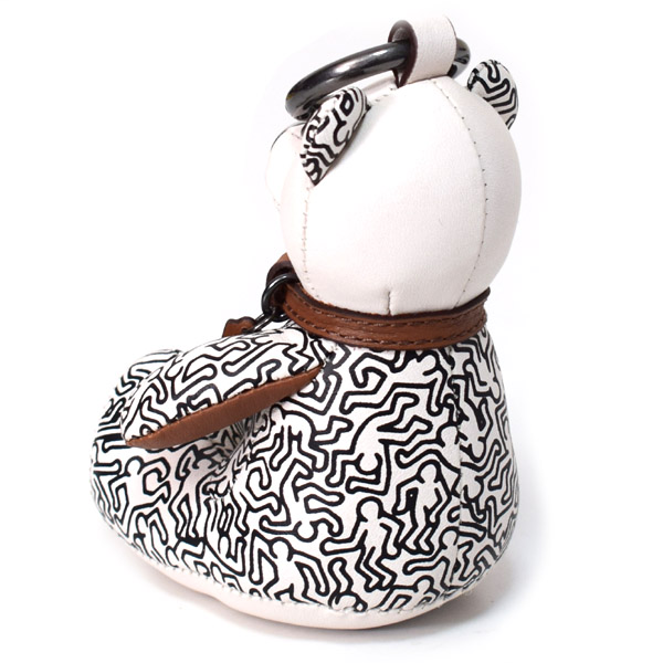 【COACH】コーチ レザー キースヘリング コラボ ストリート ポップアート テディベア ドール キーリング キーホルダー ブラック×ホワイト(日本未発売)[87380]